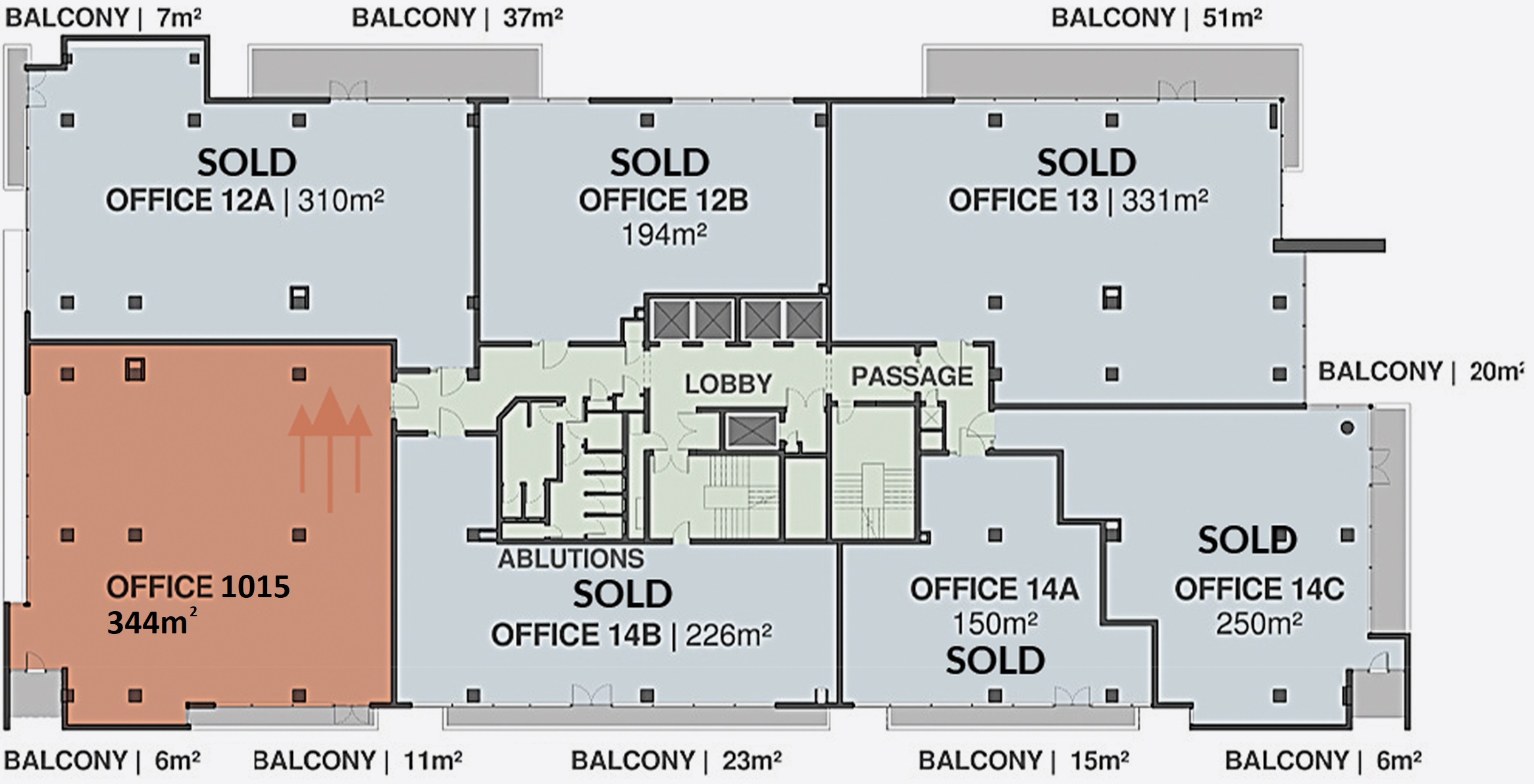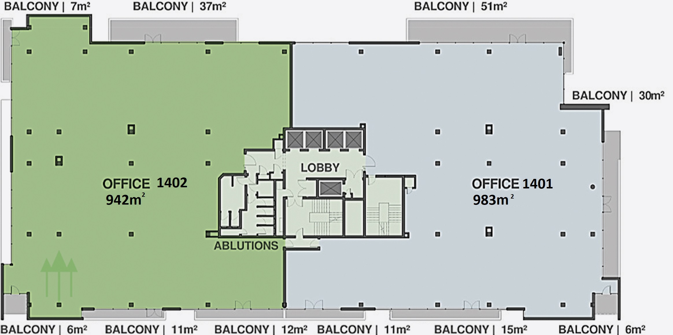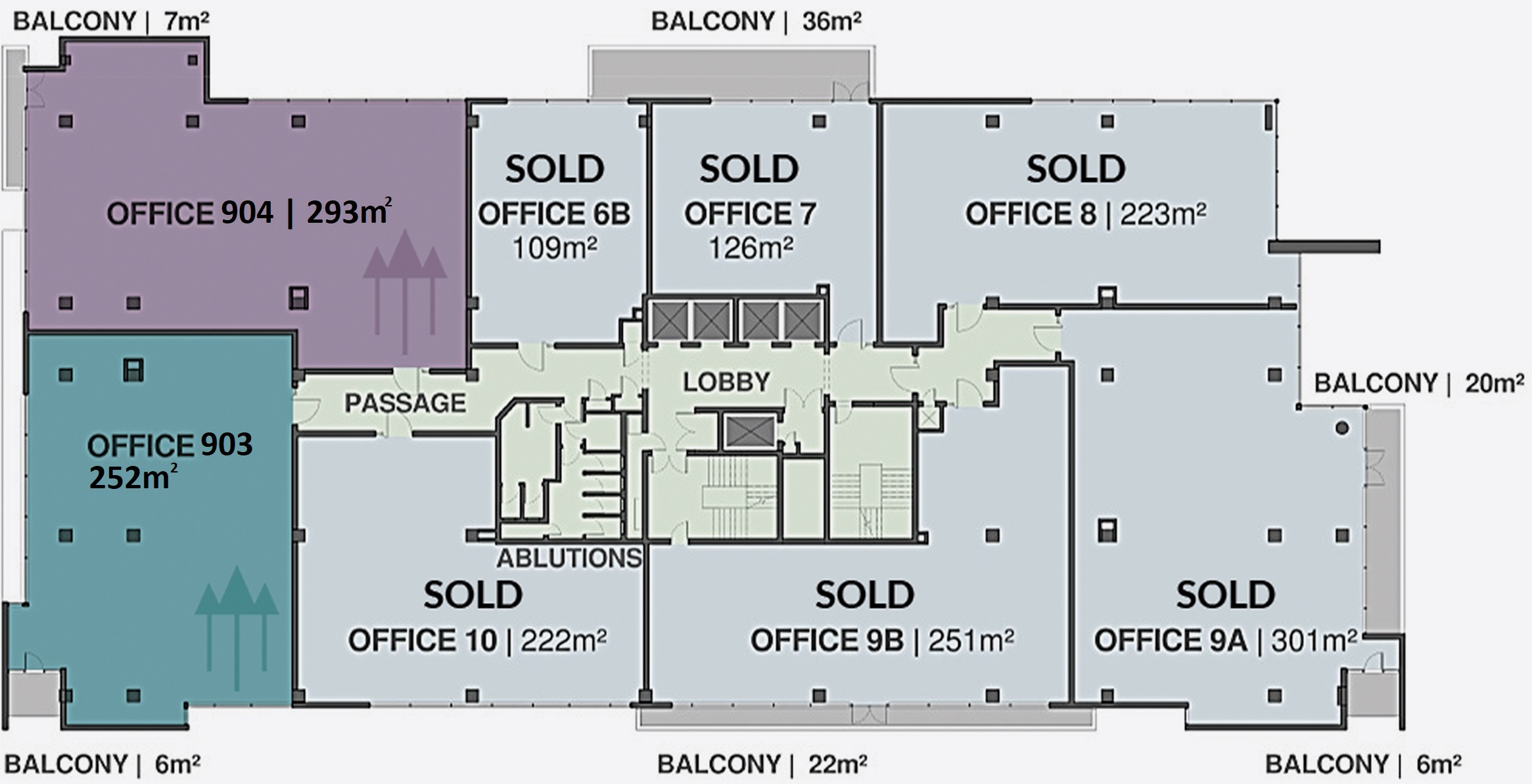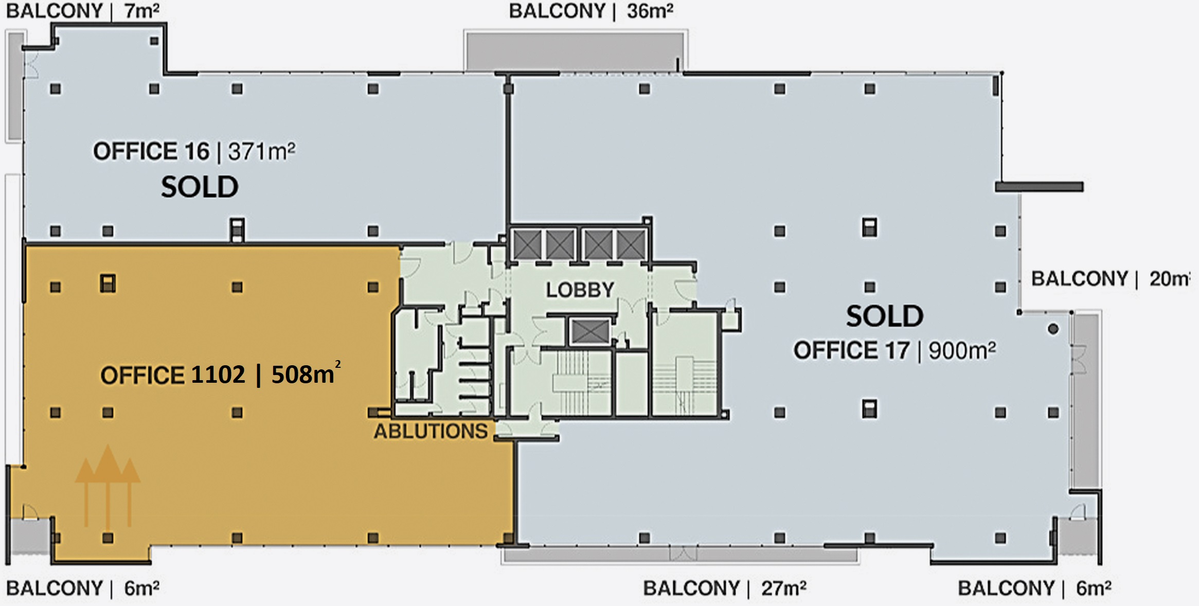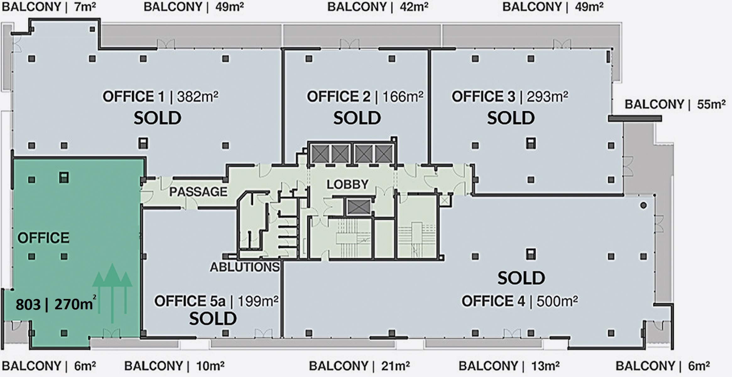 The office levels offer virtually any suite size from 125m2 to entire floors where the footplate is 1880m2. All offices have spectacular views and the top floor boasts an exclusive upmarket entertainment area for the use of tenants and for corporate functions. Extensive organic planting elements have been incorporated throughout the building, creating a naturally beautiful environment for all occupants and visitors. Energy efficient lighting, light motion sensors and economic water usage and heating solutions ensure the building will be cost-effective to operate. An automatic standby generator and back-up water supply will safeguard business continuity. The building embraces a holistic approach to wellness, which extends to the jogging showers, change rooms and bicycle racks provided, encouraging occupants to embrace a more active approach to work-life.